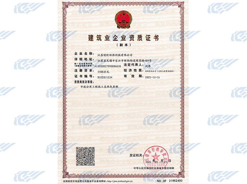 Construction enterprise qualification Certificate