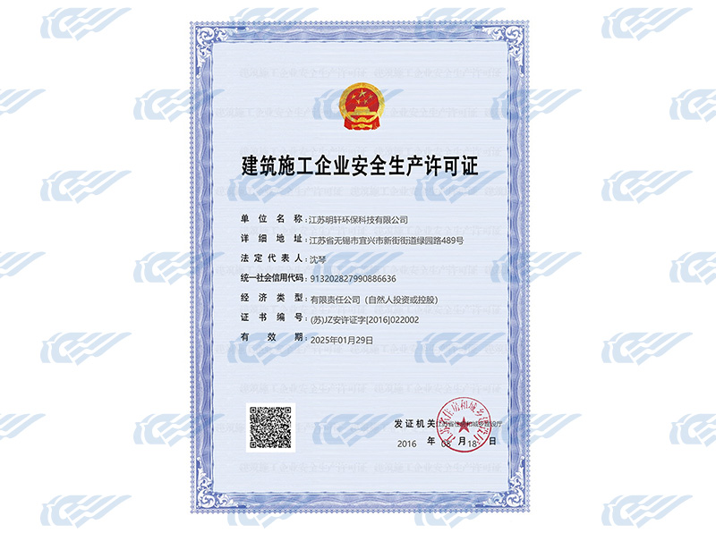 Construction enterprise safety production license
