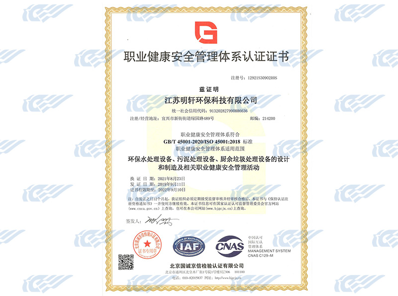 Occupational Health and Safety Management System certification