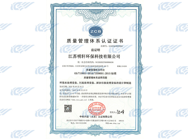 Quality management system certification